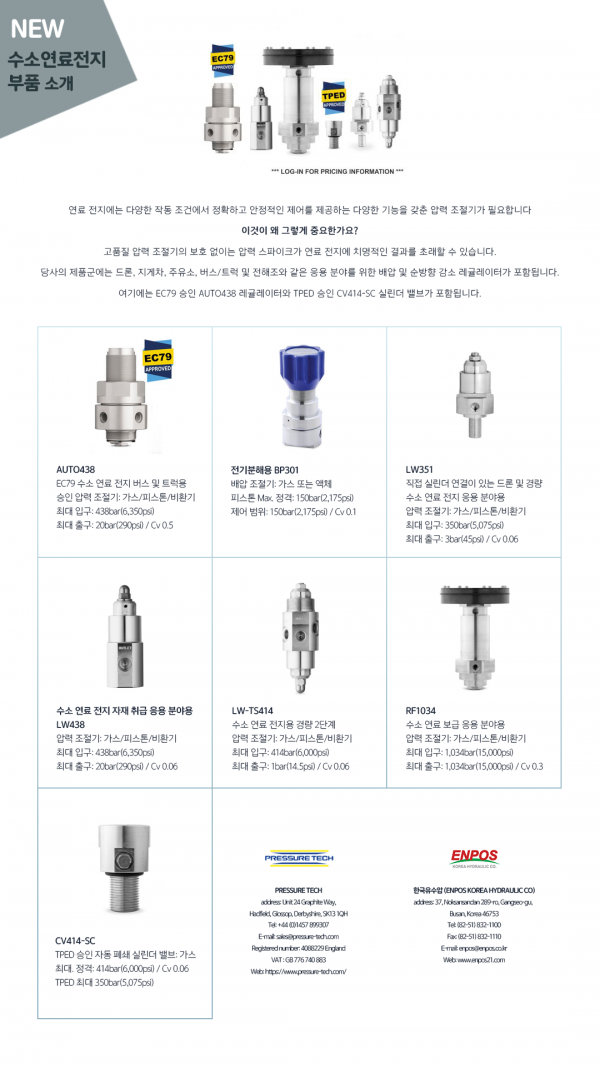 Pressure tech 수소연료전지 부품 소개 페이지 정보 글쓴이 ENPOS 작성일23-04-17 10:46 조회3,399 댓글0 관련링크 Prev Next 목록 본문 해외업체 Pressure tech의 수소연료전지 부품 소개 이미지입니다. Prev Next 목록