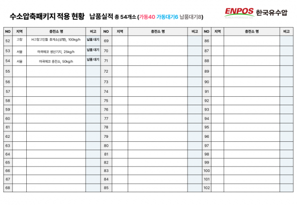 수소압축패키지 국내 적용 현황 (2025년 5월 기준) 페이지 정보 글쓴이 ENPOS 작성일21-08-20 11:34 조회4,698 댓글0 관련링크 https://blog.naver.com/enpos_korea/223326103819 899회 연결 Prev Next 목록 본문 2025년 5월 기준 당사 수소압축패키지 국내 적용 현황 입니다. 참고바랍니다. *클릭 시 이미지가 확대됩니다. Prev Next 목록